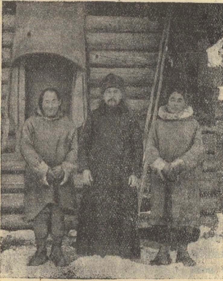 Иерей Аркадий Гаряев с вогулами. Ок 1913 г.