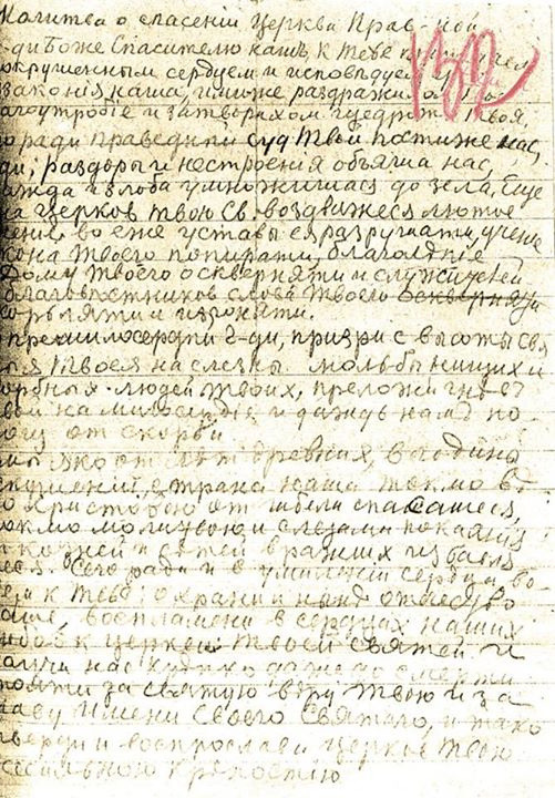 Рукопись молитвы о. Николая Сильвинского из его дела в НКВД, написанная им незадолго до расстрела