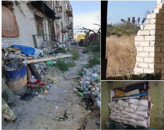 Дом штормов чем-то напоминал муравейник, так активно было движение внутри, но наружу обитатели старались не выходить даже и по нужде, для этих целей использовался разрушенный третий этаж. Выходить было нежелательно, потому что в воздухе постоянно висят вражеские «птички» с гранатами на подвеске и только того и ждут, что появится какая-то неосмотрительная жертва. В этой связи бытовой мусор бойцы валят, не выходя из подъезда прямо за порог. Образовавшиеся таким образом мусорные кучи так же, как и этот разрушенный дом, живут своей жизнью, они в буквальном смысле шевелятся от обилия в них мышей и крыс.