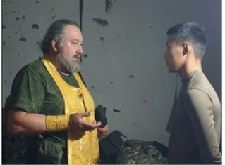 Наутро мы служили литургию в соседнем, разобранном из танка доме, где нам было отведено большое помещение на первом этаже с такими же одеялами на пустых глазницах окон. Солнечный свет проникал только через щели в наспех сколоченной двери. Дверь была устроена в оконном проеме и вела прямо на улицу. Бойцы-операторы БПЛА время от времени поспешно выходили в эту дверь, чтобы принять или запустить очередной дрон с подвешенной гранатой. И все мы понимали, что в любой момент в эту же самую дверь на наш радиосигнал может влететь FPV-дрон противника.