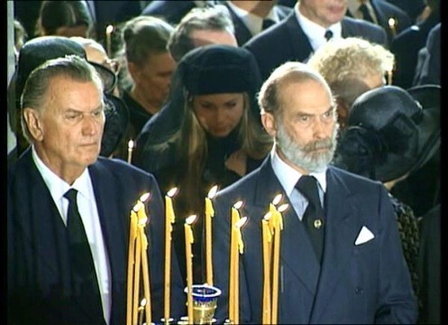 Князь Николай Романович Романов и принц Майкл Кентский на похоронах Царской Семьи в 1998 году