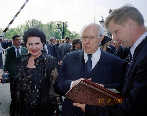 Мстислав Ростропович и Галина Вишневская на захоронении Царской Семьи в Санкт-Петербурге. 17 июля 1998 года. Фото В. Соловьева