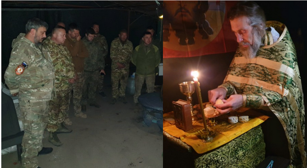 В расположение батальона в селе Евгеновка мы прибыли ближе к полуночи. Устроились под навесом в каком-то дворике, в совершенном мраке растянули стяг со Спасом Нерукотворным. Поскору развернули походный престол. Приготовили евхаристические сосуды и всё по чину. На богослужении Сам Дух Святой собрал батальон воедино – живых и павших воинов «Востока». Стих минометный обстрел. В непроглядном мраке осенней ночи мы пребывали на крохотном островке света от мерцающих восковых свечей. Ощутимо и явственно было Божественное присутствие.