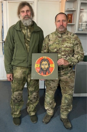 …Совершалась Тайная вечеря Самого Господа с Его учениками. «Закат спокойно стих» и на землю, как в то знаменательное время Великого Четверга, опустилась «безлунная ночь греха». И слышалась молитва: «Чертог Твой вижу Спасе украшенный … просвети одеяние души моея». Началась общая исповедь, где на каждое «Грешен, Господи», верные ученики Христовы отзывались: «каюсь, честный отче». Посреди собрания шла проскомидия, и каждый «воин Христов» подходил по очереди к жертвеннику, называя имена живых и усопших. В воскресении «нет мертвых во гробех», ибо все мы умерли и «жизнь наша сокрыта со Христом в Боге» (Колос. 3:3). Свет свечи вырывал из мрака ночи лица бойцов. Среди суровых мужеских лиц, вдруг солнечным лучиком из-под армейского камуфляжа просияло нежное девичье личико. «Помяни, Господи, рабу Твою воина Ирину и всех близких ея», – произнес я, и тонкая девичья рука, блеснув обручальным колечком, поднесла записочку с именами родителей и мужа, который сейчас тоже на войне. Ирина доброволец из Донецка. Она с начала СВО служит в батальоне фельдшером, вытаскивая из огня раненых бойцов.