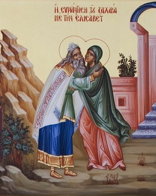 На современной греческой иконе подчёркнут почтенный возраст родителей Иоанна Предтечи свв. праведных Захарии и Елизаветы.