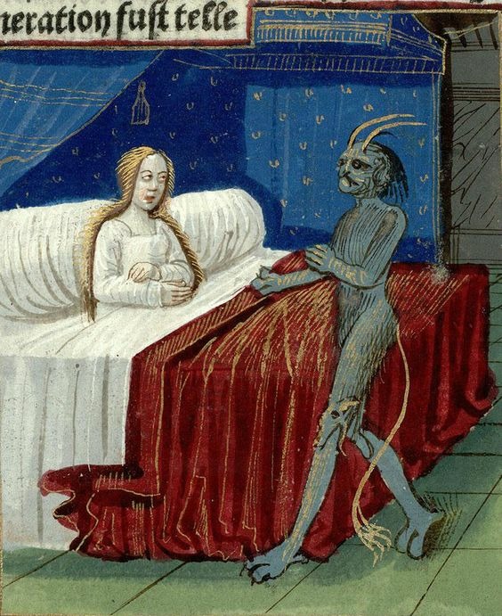 В средние века в Европе эти блудные твари были представлены в двух видах: инкубы – демоны мужского пола, вступающие в связь с женщинами (у поляков – пшиложники), и суккубы – демоны женского пола, вступающие в связь с мужчинами (у поляков – положники). Следует признать, что в Средневековой Европе эта проблема интимных сношений с дьяволом стояла необычайно остро. Картина была крайне неприглядная, как в простонародье, так и среди правящих классов, и обвинение в данном грехе весьма часто приводило несчастных на костёр. «В настоящее время (XIX век) убежденность в этих фактах сохранилась: у великороссов, малоросов, поляков, литовцев, немцев, имеретин, татар и туземцев на островах Самоа, в Австралии».[29]