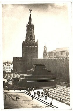 Рис. 12: Мавзолей Ленина, построенный в 1930 году (фото 1930-х годов – на башнях Кремля еще находятся Двуглавые Орлы – символ Российской Империи)