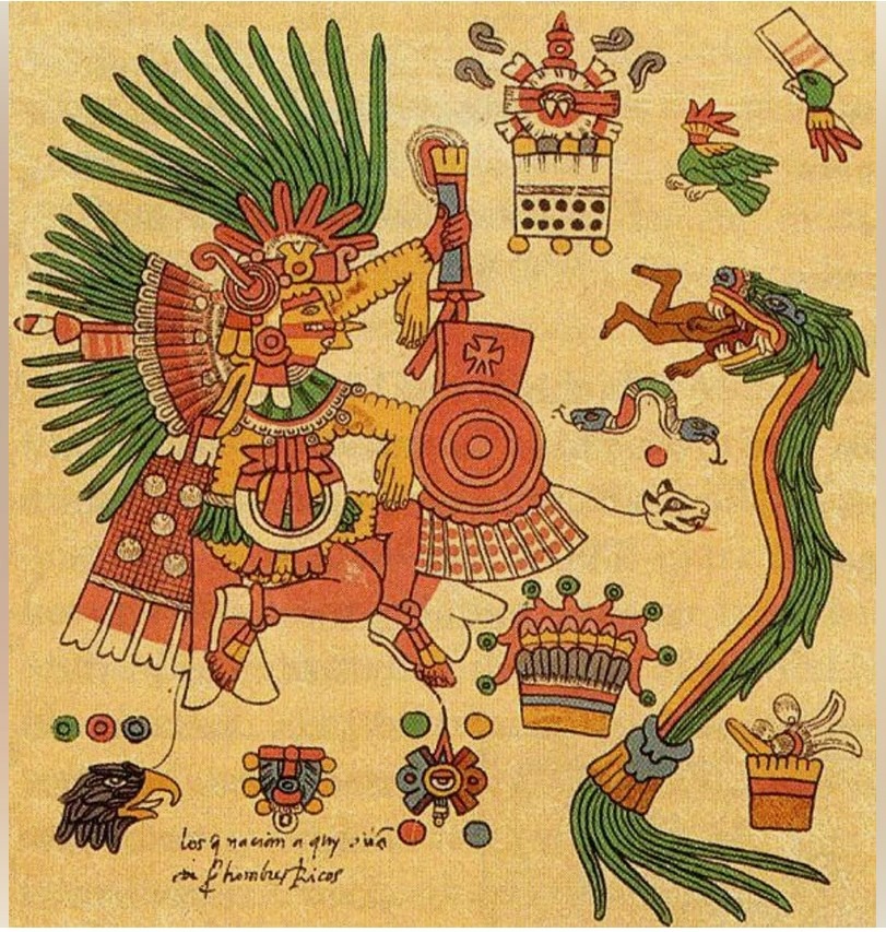 Существуют произведения живописи, изображающие Великого Змея вместе с несчастным красноволосым человеком, якобы Монтесумой…