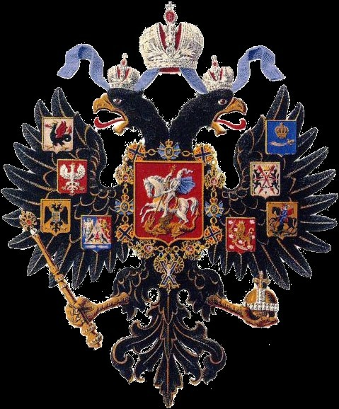 Рис. 4: Герб Российской Империи начала XX века. В центре герба великомученик Георгий Победоносец поражает змея-сатану