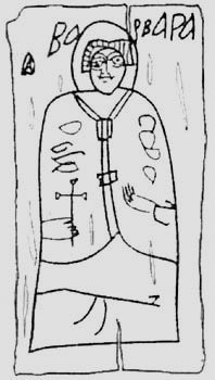 Великий Новгород. Изображение Святой Великомученицы Варвары на древней бересте