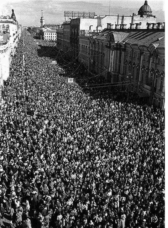 День Победы. Ленинград, Невский проспект. Идут ветераны. 1975 год.