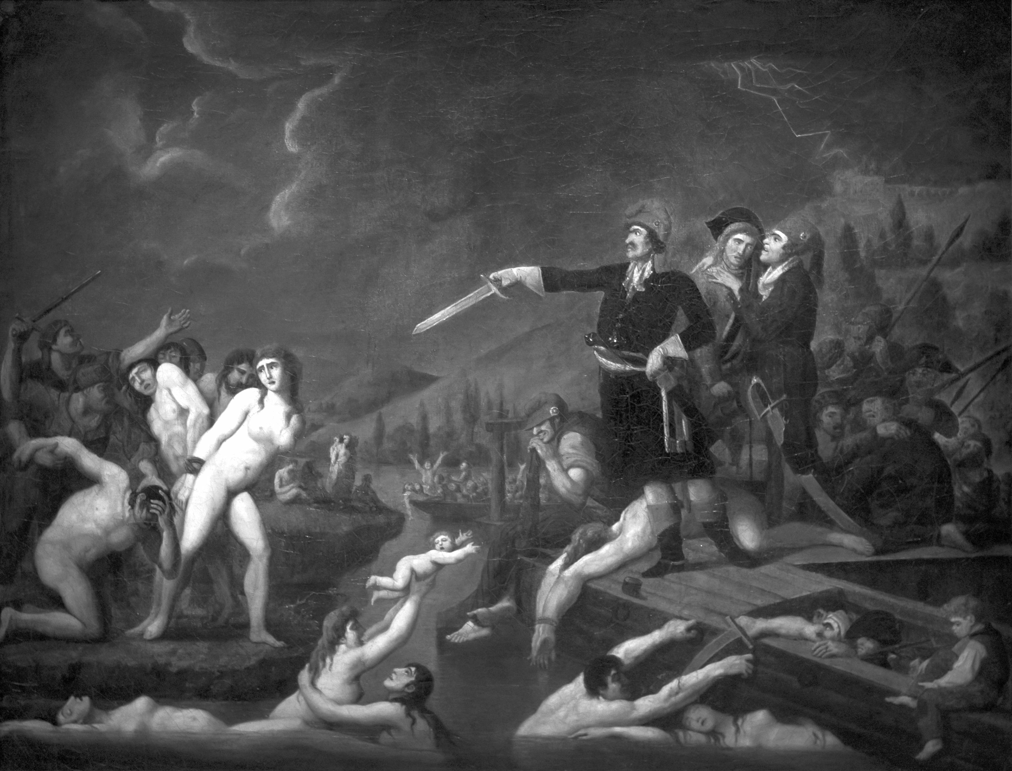 Революционер Ж.-Б. Каррье лично руководит казнью 13 тысяч человек. Картина «Утопление в Нанте в 1793 году». Художник Д. Обер, 1882 год.