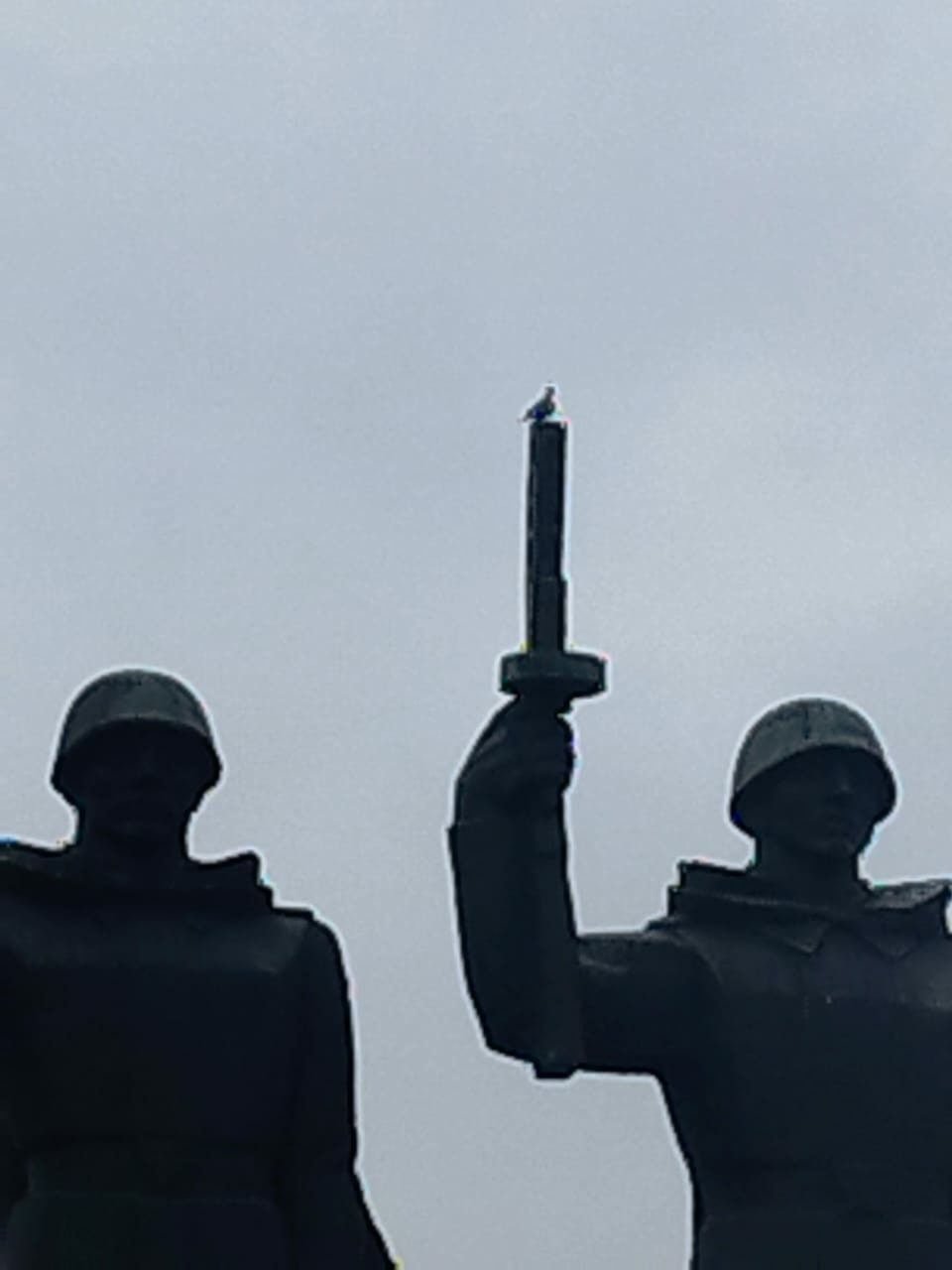 И, вдруг, я поднял глаза на памятник. На автомате одного из солдат сидел сизый голубь. Может быть скоро конец войне? Дай то Бог. Я понял, что увидел то, что было нужно, чтобы написать статью и можно уходить. Будем верить.