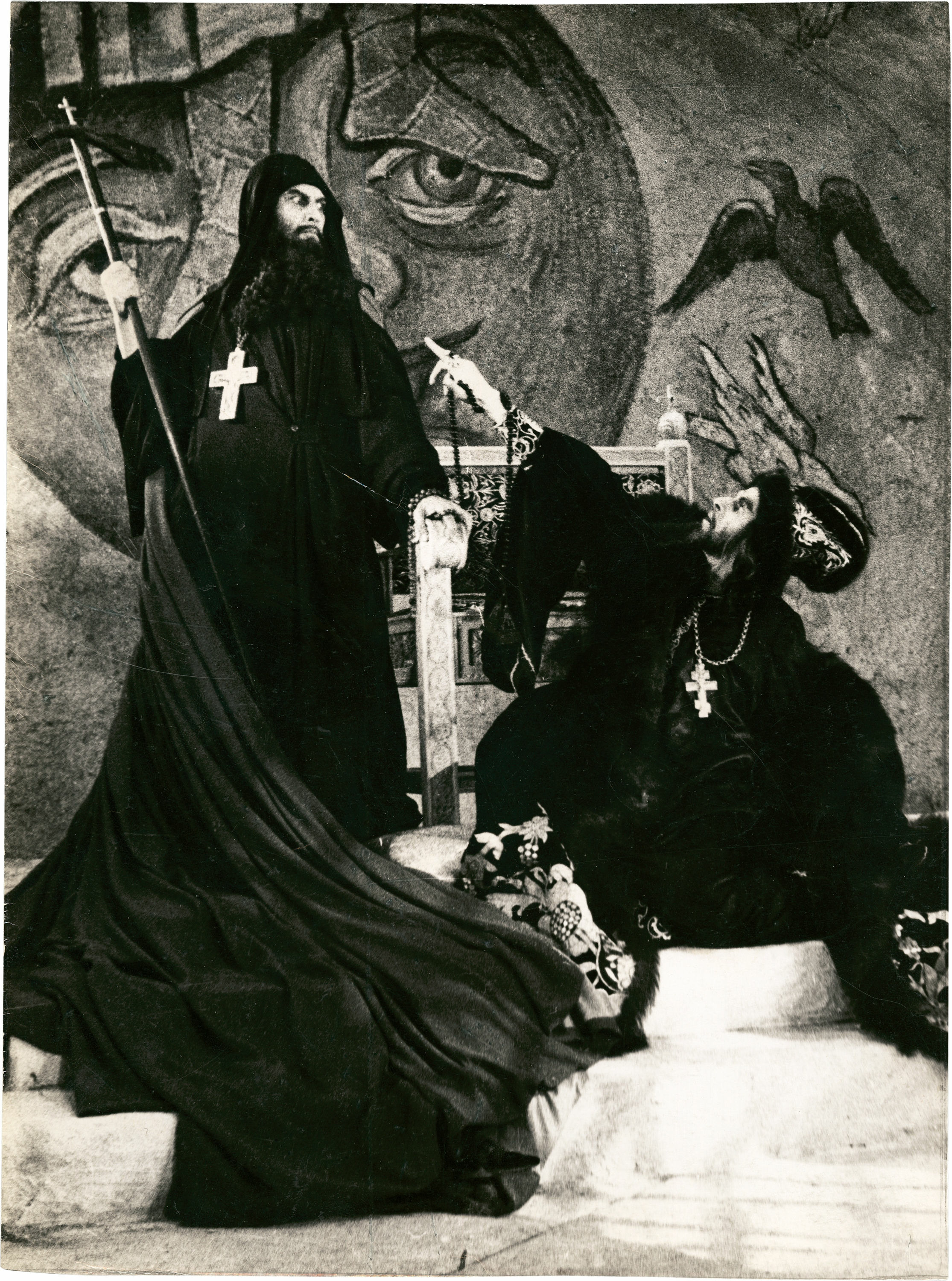Фильм «Иван Грозный» 1944 год. Сцена Венчания на Царство. За спиной царя митрополит Макарий Московский.