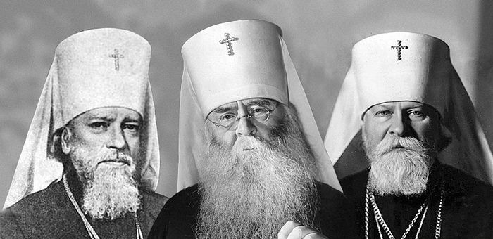 Участники встречи со Сталиным в Кремле: Местоблюститель Патриаршего престола Митрополит Московский и Коломенский Сергий (Страгородский), митрополит Ленинградский Алексий (Симанский) и митрополит Киевский и Галицкий Николай (Ярушевич).