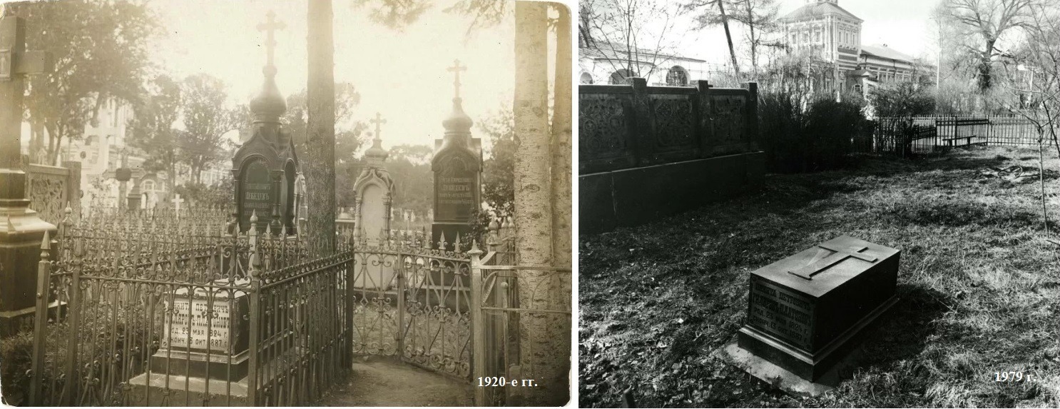 Фото 2. Могила Н.П.Гилярова-Платонова в 1920-х и в 1979 г.