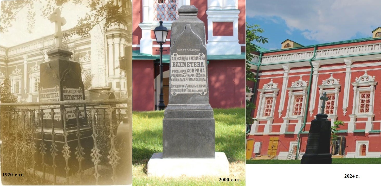 Но сохранились и родники чистой духовной воды. Например, к радости православных на старом монастырском кладбище остался надгробный памятник Александры Николаевны Бахметевой и ее супруга. Конечно, без креста наверху (его восстановили лишь недавно). Видимо, еще в 1930-х годах писателям, которые защищали могилы своих собратьев по цеху, пришлось поставить охранный знак на ее памятнике. Выгравировать надпись «ПИСАТЕЛЬНИЦА», что для «опьяненных» означало: «Не трожь!». Прекрасные труды Бахметьевой по истории Церкви питали и питают чистой живительной водой веры стремящихся к Богу.