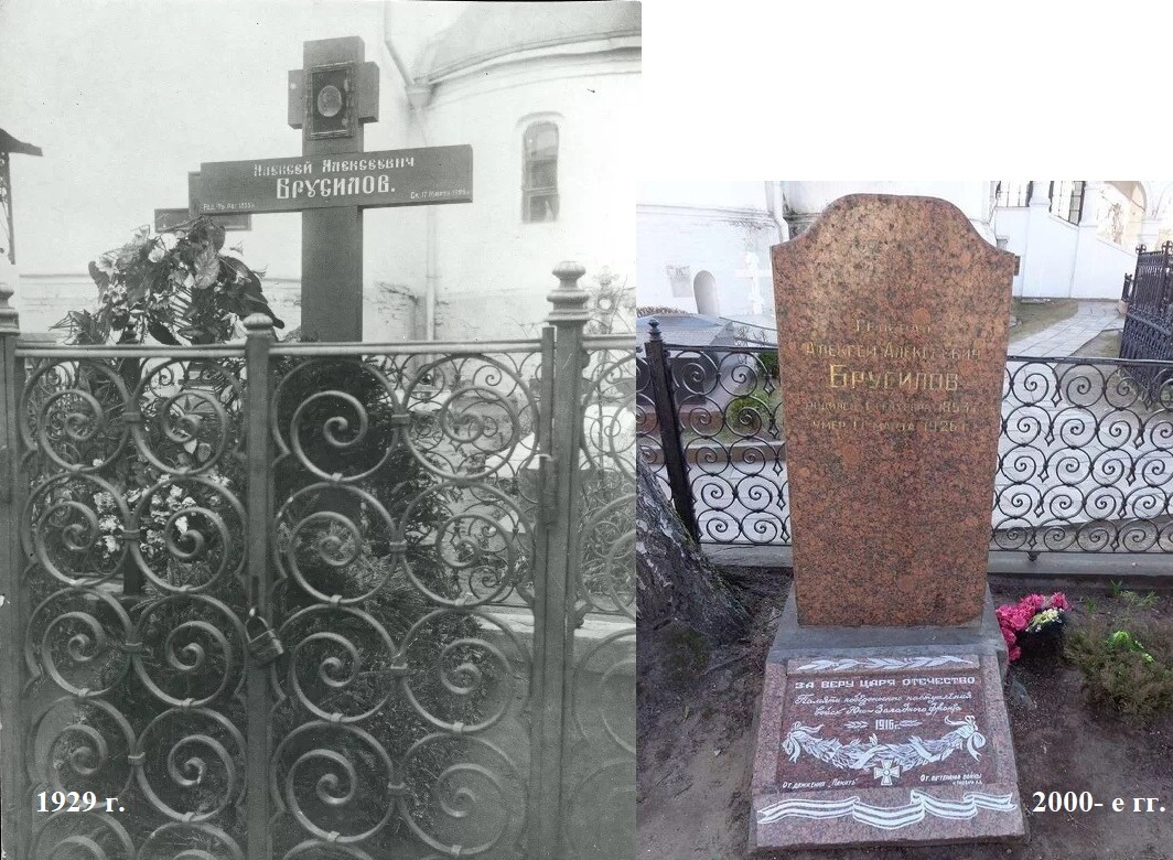 Говорят, что снесенный в 1930-х памятник на могиле генерала А.А. Брусилова был восстановлен в конце 1940-х. Но исторический крест, присутствовавший на его надгробии, не восстановили и поныне.