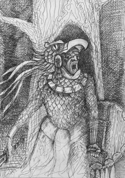 «Так. Видимо, кто-то хочет покарать нас, как нарушителей покоя душ, погребённых в этом капище. Ну, с существом из плоти и крови мы тоже справимся. С нами Крестная Сила!»