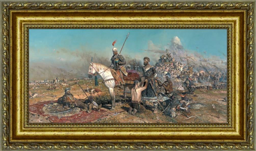 — В твоей картине преобладает тема Христова воинства. Здесь и воины Святого Царя Константина Великого, и герои Куликовской битвы, солдаты и офицеры Первой мiровой войны, монархисты гражданской, герои Великой Отечественной, есть и «афганцы», и сражавшиеся за целостность России на Кавказе на рубеже XX–XXI столетий... Вон там, полагаю, изображён Воин-Мученик Евгений Родионов?..