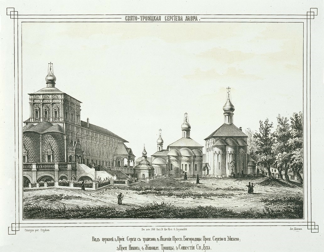 [47] Шамин Д. Троице-Сергиева лавра. Литография. (1828-1899) / автор рисунка Скино А.Т., литограф Струков Дмитрий Михайлович // Государственный исторический музей (ГИМ). 70156/18105. ГК44167101. 1849.
