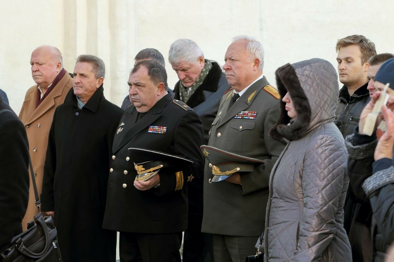 Генерал-майор Константин Георгиевич Шеин, адмирал Владимир Николаевич Бурцев, полковник Михаил Николаевич Никитин, полковник Владимир Георгиевич Шеин на панихиде в Свято-Троицкой Сергиевой лавре на могиле генералиссимуса А.С. Шеина.