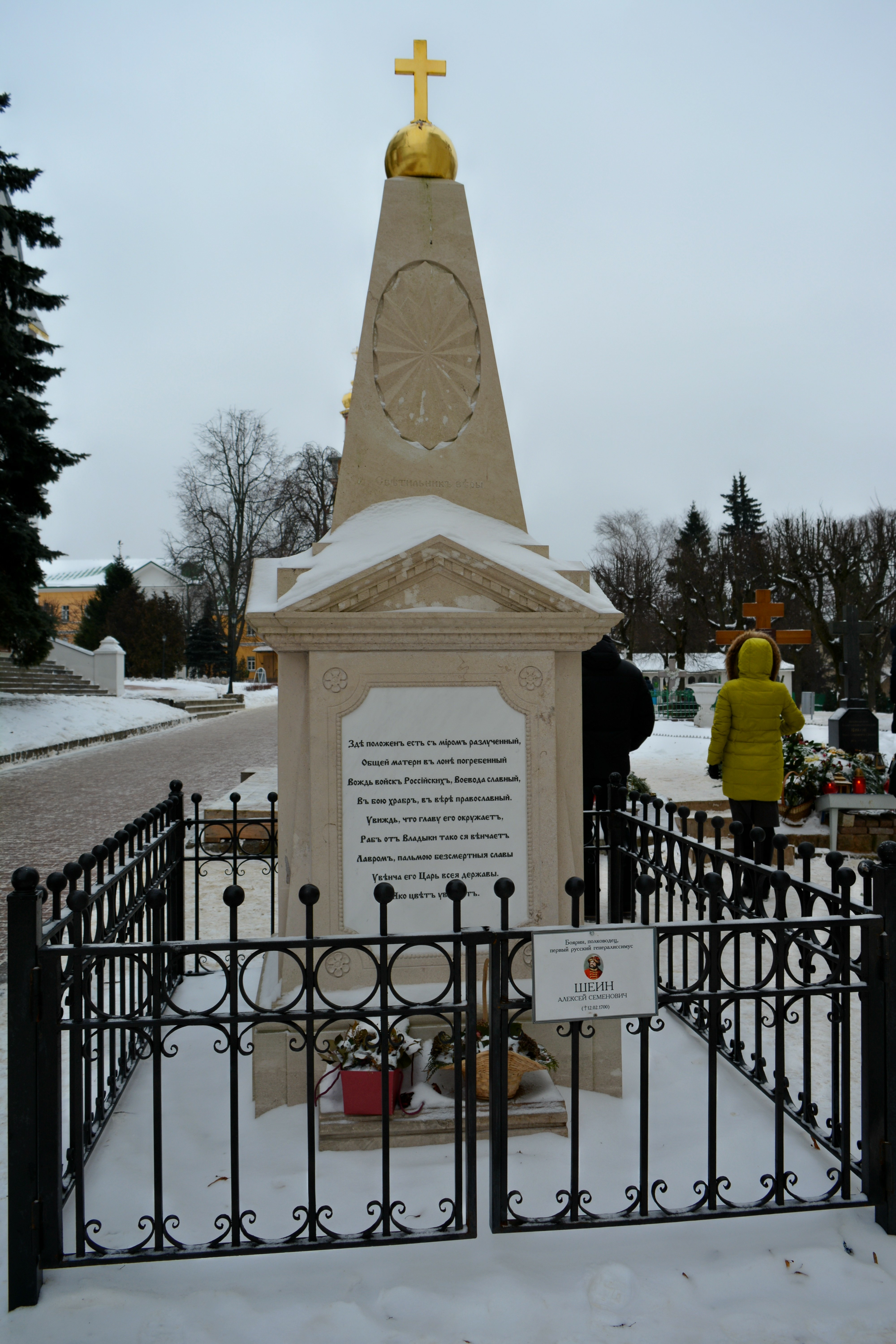 Храмоздатель и герой Азовской победы А.С. Шеин умер 12 февраля (25 февраля по н. ст.) 1700 года на 48-м году жизни[41], что зафиксировано в источниках XVIII[42] и XIX[43] вв., а также на памятнике генералиссимусу в Свято-Троицкой Сергиевой лавре (хотя имеются и иные данные о дате смерти – 2 февраля по ст. стилю[44]). До самой своей кончины Алексей Семёнович значился на службе, управляя тремя главными военными приказами, что можно приравнять к должности «министра обороны» Московского государства. В феврале он должен был явиться на заседание боярской думы, прибыть на которое уже не смог.