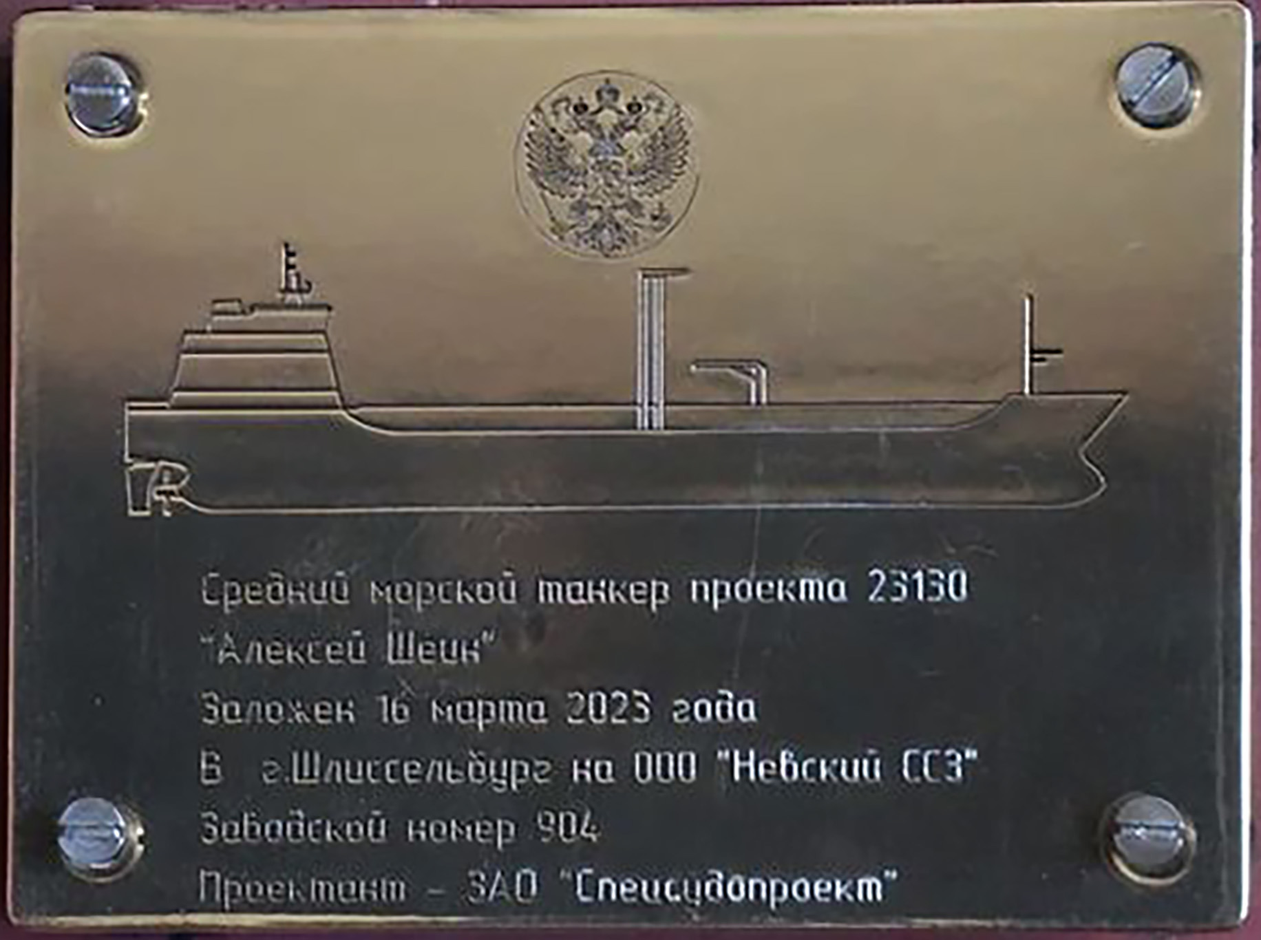 Закладная доска среднего морского танкера «Алексей Шеин».