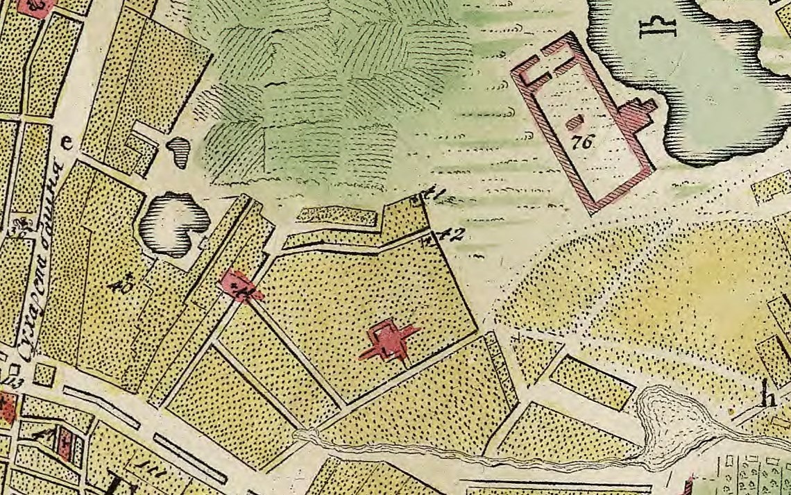 План Императорского Столичного города Москвы, сочиненного под смотрением архитектора Ивана Мичурина в 1739 году. Фрагмент.