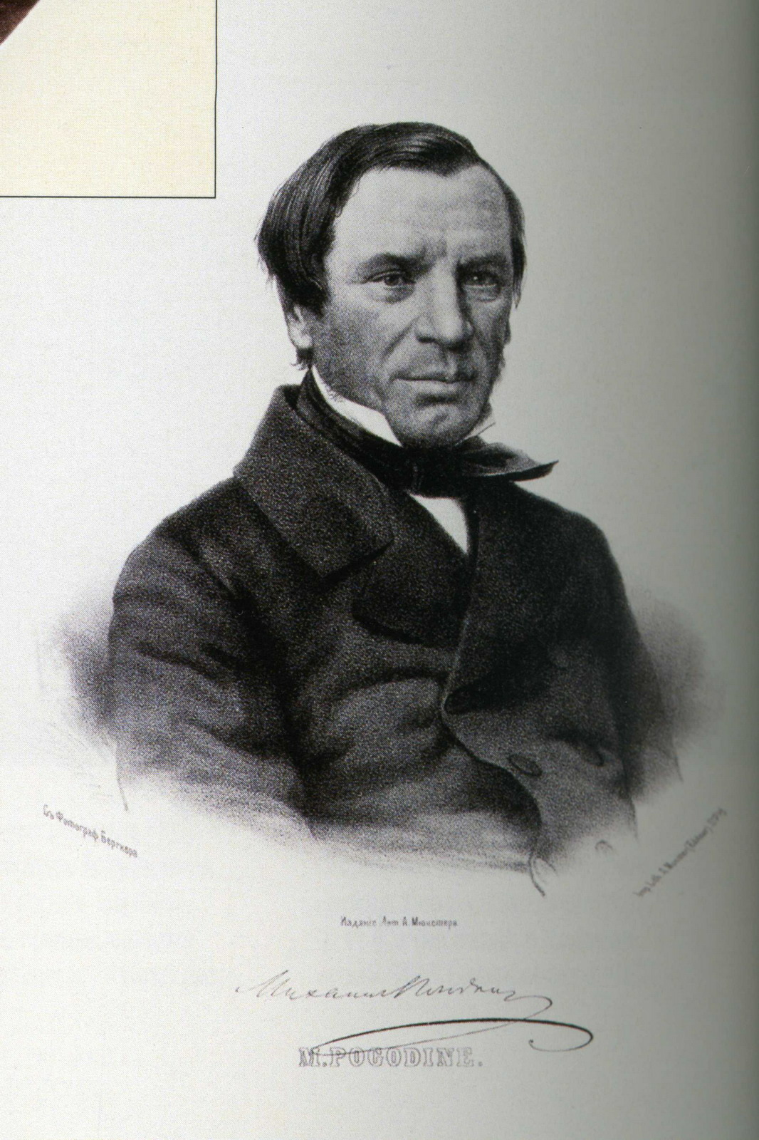 Михаил Петрович Погодин (1800–1875), историк, журналист, писатель, издатель, академик Санкт-Петербургской академии наук. Литография А.Э. Мюнстера с фотографии К.А. Бергнера. 1860-е гг.