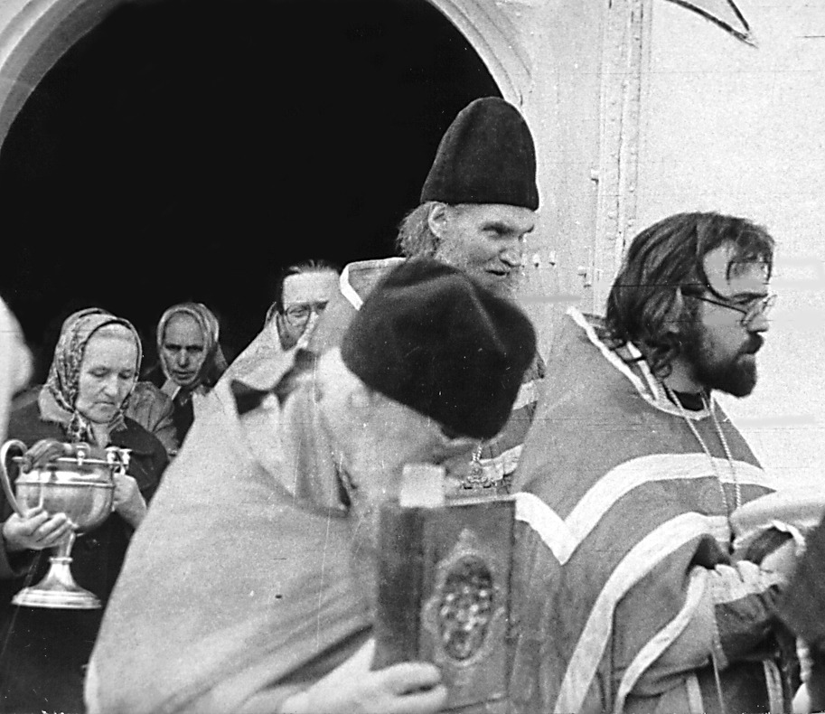 В центре архимандрит Иоанн (Крестьянкин), справа от него протоиерей Валентин Мордасов