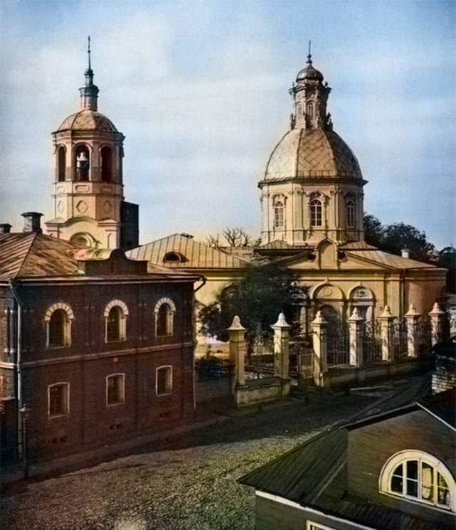 В 1752 году императрица Елизавета Петровна, чей Краснопрудный дворец располагался здесь же (на месте Шеина двора), пристроила к храму Тихвинский придел в память Полтавской победы своего отца. Эта главная победа Петра была одержана в канун празднования Тихвинской иконы Божией Матери. Ограда храма, возведенная в стиле елизаветинского барокко, по мнению экспертов, могла быть творением самого Бартоломео Растрелли или его школы. Храм был не просто приходской церковью, он был памятником воинской славы, частью души и истории города (Илл. 5-6).