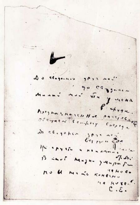 Нельзя не обратить внимания и на тот факт, что за несколько дней до гибели Есенина в ОГПУ изучали его почерк, а потом появилась по представлению Вольфа Эрлиха так называемая предсмертная записка. И как тут не вспомнить, что, помимо Зуева-Инсарова, были и другие специалисты по почерку, например Яков Блюмкин? Он сумел подделать не только подпись секретаря Дзержинского, чтобы проникнуть к немецкому послу Мирбаху, но даже ухитрился написать в мае 1925 года на Лубянке предсмертное письмо Бориса Савинкова, по данным А.И. Солженицына [8]. Это письмо долгое время считалось подлинным и в кругу ближайших друзей убитого.