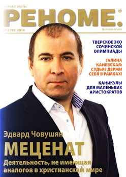 А об этом персонаже написана сотня статей в газетах и журналах. Одна из ярких зарисовок — произведение Нины Метлиной «Меценат. Деятельность, не имеющая аналогов в христианском мире» в тверском журнале элиты «Реноме», с портрета Човушяна на обложке, которым мы и начинаем серию иллюстраций к этому очерку. [1]