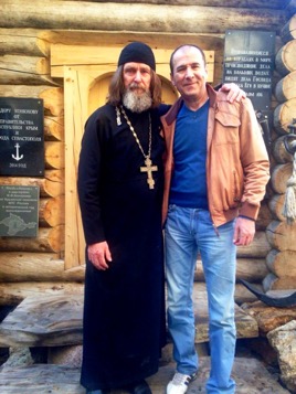 Совместный снимок Фёдора Конюхова с Эдвардом Човушаном около фёдоровской часовни. г. Москва, 1996 год.