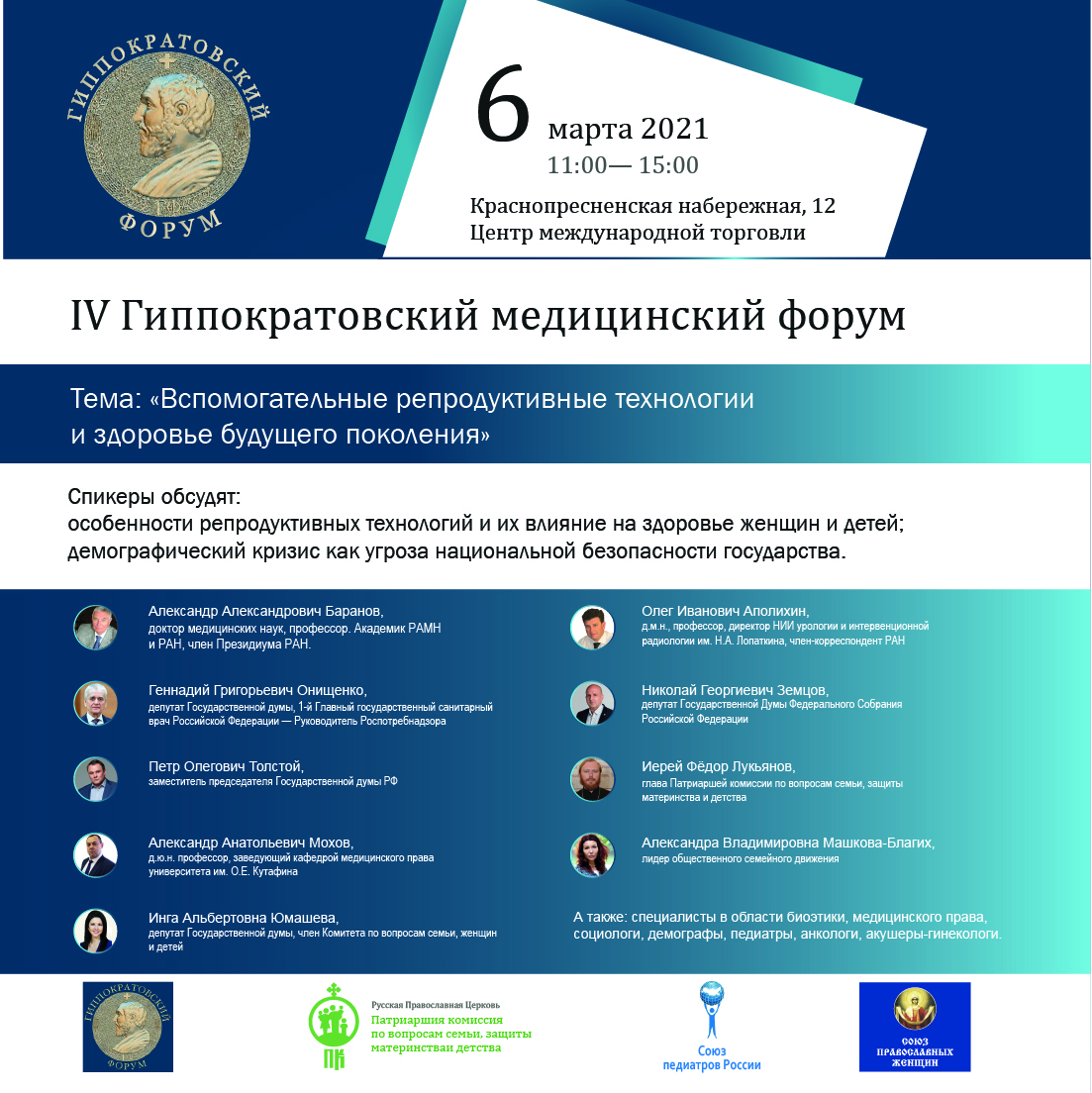 Форум инициирован Всемирным Русским Народным Собором и Союзом Педиатров России.