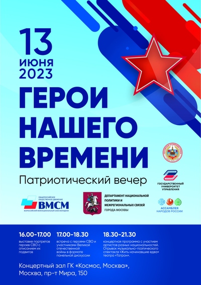 13 июня 2023 года в концертном зале гостиницы «Космос» пройдет патриотический межнациональный вечер «Герои нашего времени». Цель мероприятия — максимально разносторонне осветить подвиг, самоотдачу и самопожертвование участников СВО разных национальностей, продемонстрировать единство российского народа, начиная с периода Великой Отечественной войны до наших дней, говорится в пресс-релизе, поступившем в редакцию РНЛ.