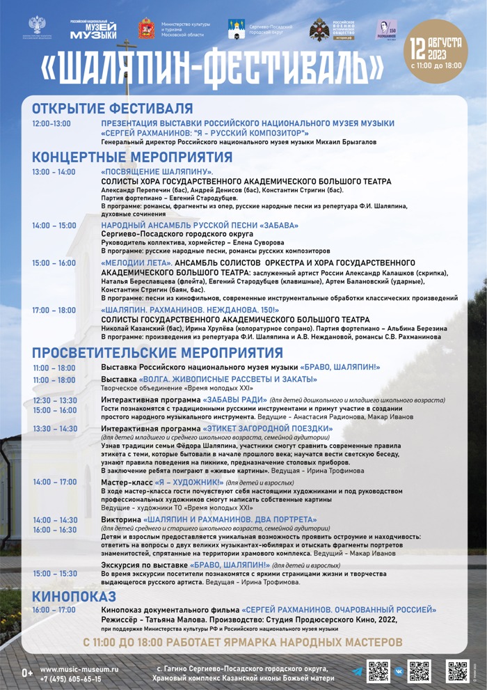 12 августа 2023 года в селе Гагино Сергиево-Посадского городского округа на территории Храмового комплекса Казанской иконы Божьей матери состоится традиционный «Шаляпин-фестиваль», сообщается в пресс-релизе, поступившем в редакцию «Русской народной линии».