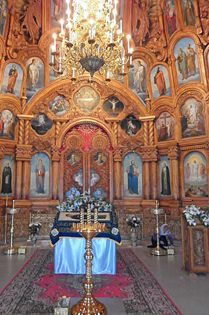 И уже через два с половиной года - это ли не чудо второе по нашей сегодняшней нестабильной жизни?! - в 39-метровом (с 13-этажный дом!) деревянном Преображенском храме стали проводиться полноценные службы. Первая литургия была совершена здесь 14 февраля 2010 года (первый молебен отслужен 27 января).