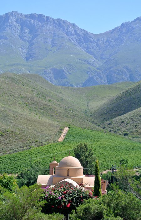 Маленький каменный храм расположился в долине, которую с одной стороны окружают величественные и прекрасные Лангебергские горы, а с другой - небольшие холмы, за которыми - Робертсон. В солнечный день храм светится еще издали, потому что солнечные лучи, попадая на желтые стены, усиливают цвет. Округлый купол красиво вырисовывается на фоне гор. Все в строении органично, как будто не человек построил этот храм, а сама природа, или лучше Господь Бог. Вокруг храма заботливыми руками местного фермера Дэни посажены розы всевозможных сортов, зеленеют виноградники, на гранатовых деревьях висят тяжелые красные плоды, готовые к сбору.