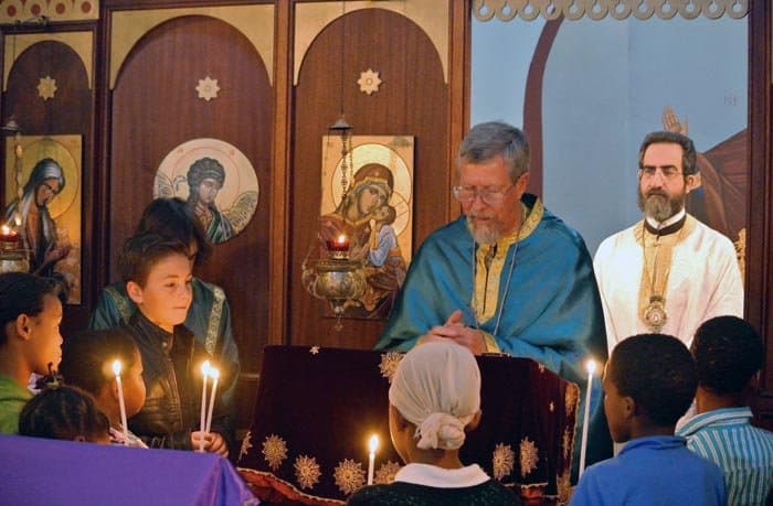 Прихожане Кристофер и Макрина огранизовали что-то вроде воскресной школы для детишек. Приносят им православные раскраски, стараются рассказывать о Церкви, о православной литургии, да и просто по-доброму общаются с детьми, которые в своих семьях зачастую не получают тепла, ласки и внимания.