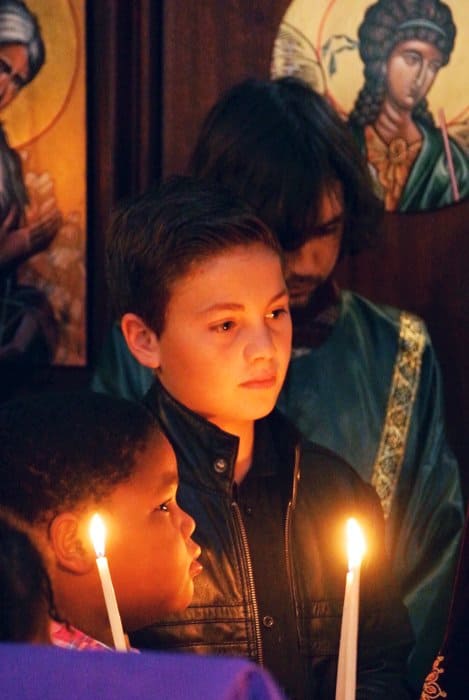Самый удивительный момент службы - это чтение Евангелия. Батюшка выходит на амвон со Священным Писанием, и вокруг него собираются все дети со свечками в руках. Они выглядят как темнокожие ангелы, лица их одухотворены и серьезны, кто-то даже приоткрыл от вдохновения рот, вслушиваясь в слова и пытаясь их понять. Смотришь на них, таких еще невинных, чистых, отрытых всему доброму, и хочется самой стать вновь ребенком, и также трепетно держать в руках маленькую свечку, внимая таинственным Божьим словам.
