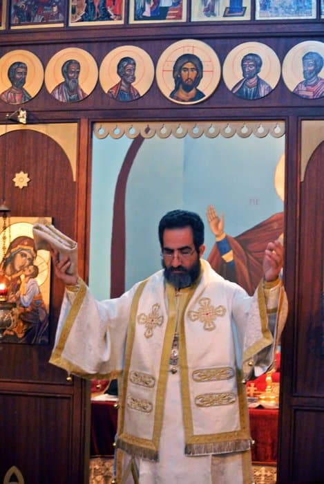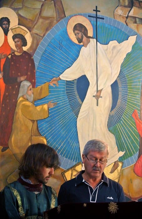 Служба начинается с такого трогательного неофициального момента: Дэни, который является главным певчим, приносит себе стаканчик воды, чтобы в течение службы смачивать горло, откашливается и открывает книгу с текстом и нотами. Когда батюшка из алтаря видит эти традиционные манипуляции, он начинает службу.