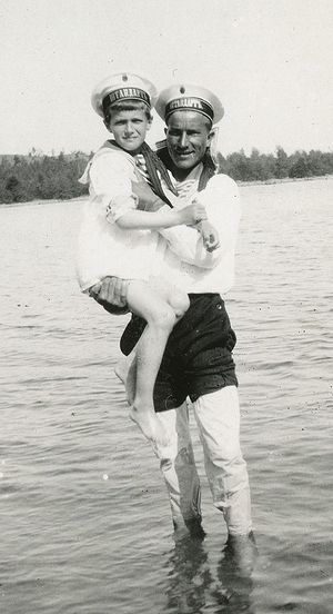 Царевич Алексей с матросом Нагорным. Могилев, 1910 г.