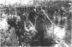 И все-таки их обнаружили: когда они переходили железную дорогу. Раздались выстрелы. Партизаны бросились в болото. Носилки пришлось оставить. Степана Несынова несли по очереди на спине. Больше тридцати - сорока шагов никто сделать не мог. Степан переползал с одной спины на другую. В болотной трясине шли по пояс. Однако ночь укрыла партизан. Немецкие патрули не полезли в болото.
