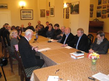 На очередное заседание СППФ приглашены известные православные ученые, публицисты и общественные деятели Петербурга. Напомним, что инициаторами создания СППФ выступили Православное информационное агентство "Русская линия" (гл. редактор А.Д.Степанов) и некоммерческий Институт русской культуры (ректор протоиерей Николай Головкин). По замыслу инициаторов, заседания СППФ представляют собой серию круглых столов, посвященных обсуждению наиболее актуальных тем, волнующих русское православно-патриотическое движение и российское общество в целом. Материалы обсуждения в виде звуковых файлов будут опубликованы на сайте РЛ. Последнее заседание СППФ было посвящено встрече с известным православным философом Татьяной Горичевой. C материалами остальных прошедших заседаний СППФ можно ознакомиться на специальной странице нашего сайта. Желающих принять участие во встрече с редколлегией журнала "Трибуна русской мысли" просим обращаться в редакцию "Русской линии" по тел.: (812) 568-40-13.
