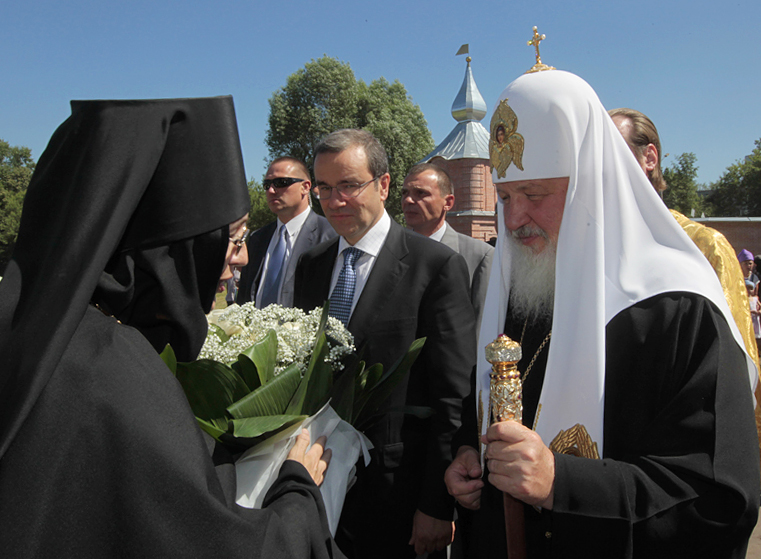 Патриарх Кирилл пожелал матушке настоятельнице и сестрам, чтобы обитель становилась «центром духовной жизни, центром притяжения для многих людей, ищущих Бога», и в память о своем посещении подарил образ Божией Матери с памятной надписью.