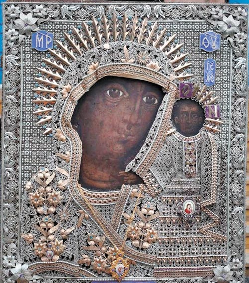 А вместо утраченной чудотворной иконы в монастыре появился список, в который включены фрагменты утраченной Святыни. В том числе часть ризы и сохранившаяся панагия.