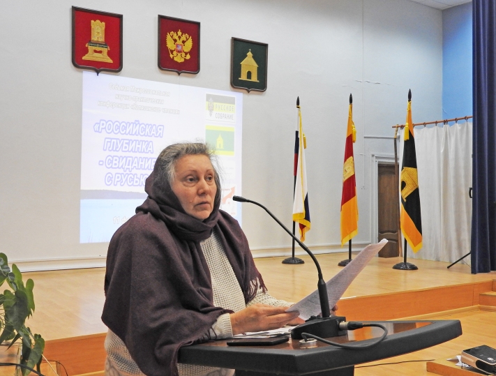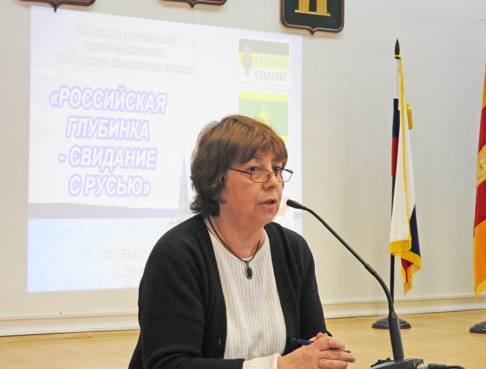 Мария Андреевна Мономенова - писательница, публицист из г. Козельск Калужской области, представила на чтениях своё рассуждение на тему русских православных общин, которые, находясь в деревне, должны нести свет и веру Христову в народ, являться объединяющим началом.