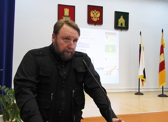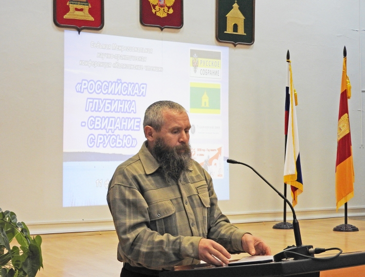 Он отметил, что эту конференцию, как и деятельность «Русского Собрания» в целом, можно считать частью работы в рамках Указа Президента России от 31 декабря 2015 года «О Стратегии национальной безопасности Российской Федерации». По его мнению, сегодня необходимо спасать русскую глубинку от вымирания, всерьез озаботиться реальной поддержкой малых городов. Именно об этом, о конкретных проблемах, с которыми сталкиваются на местах, говорил глава района. А также он отметил, что щит России - это наша нравственность и особенно вера, духовность. Вся наша история об этом прямо говорит - благодаря вере Россия всегда спасалась от бед. Деревня, село - носитель нравственности и духовности, и именно поэтому сегодня враг России бьёт с неистовой силой по глубинке.